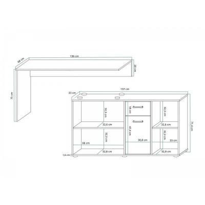 Dimensiuni și caracteristici Înălțime: 75 cm Lățime: 137 cm Adâncime: 136 cm Grosimea blatului: 1.8 cm Grosimea plăcii de carcasă: 1.8 cm Grosimea ușilor: 1.8 cm Numărul de uși: 1 buc. Numărul de sertare: 1 buc. Greutate: 60 kg Termenul mediu de livrare de la: 10 zile lucrătoare Costul transportului: Gratuit în toată România Garanție: 24 de luni Dimensiunile pachetului: Dimensiuni Tip birou: Cu sertare Cu ușă Unghiular Mânere: din stoc Piesă de mobilier versatil: Nu Culoare: Mestesug alb Stejar artizan auriu Materiale: PAL laminat Materiale suplimentare: ABS Informații suplimentare: Variantă pe partea stângă sau dreapta Origine: Romania