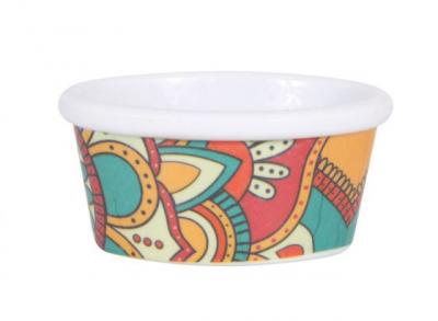Bol Oval din Melamina Colorata – Stil si Rezistenta la Masa Ta (80 ml) Adaugati o pata de culoare si energie prezentarii dumneavoastra culinare cu acest bol rotund din melamina colorata . Cu o capacitate de aproximativ 80 ml , acest recipient compact este perfect pentru servirea portiilor mici de sosuri, dip-uri, masline, alune sau alte garnituri ce necesita un decor atractiv. Fabricat din melamina de inalta calitate, bolul imbina aspectul estetic al ceramicii cu durabilitatea imbatabila a materialelor moderne, fiind extrem de rezistent la socuri mecanice si uzura zilnica. Avantajele Bolului din Melamina: Design Vibrant: Exteriorul este decorat cu un model etnic/geometric multicolor, oferind o prezentare vizuala moderna si memorabila pe masa. Material Ultra-Rezistent: Melamina este cunoscuta pentru rezistenta sa la spargere si ciobire, fiind o alternativa sigura si economica la portelan in mediile aglomerate. Finisaj Neted si Igienic: Suprafata interioara alba si neteda nu retine mirosurile sau petele, facilitand o curatare rapida si eficienta. Versatilitate: Dimensiunile de 8.5 cm lungime si 6.5 cm adancime il fac util pentru o gama variata de gustari sau condimente. Economie de Spatiu: Forma rotunda permite stivuirea facila, optimizand spatiul de depozitare in bucatarii sau baruri. Specificatii Tehnice: Capacitate: aprox. 80 ml Lungime: 8.5 cm Adancime: 6.5 cm Material: Melamina premium (neteda) Culoare/Model: Multicolor cu interior alb