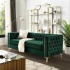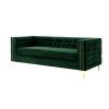 Canapeaua noastră cu 3 locuri va oferi casei dvs. renașterea pe care o merită. Confortul și stilul sunt evidente cu această minunată piesă de mobilier. Prezintă o țesătură bogată din catifea, cu butoane, cu nasturi contrastante, brațe pătrate curate, căptușeală din spumă de înaltă densitate și picioare metalice solide în coordonare. Cu această canapea superbă, tradiționalul se întâlnește cu modernul și rezultatul nu este decât spectaculos. Ultra confortabil și elegant. DESIGN ELEGANT - Canapea în stil tradițional cu aspect modern, tapițerie realizată manual cu țesătură de catifea. TUFTING CU BUTON - Spătarul și brațele capitonate cu butoane pentru un confort excepțional HANDMADE TRIM - Tăierea elegantă realizată manual cu butoane cu aspect de argint/aur oferă un aspect luxos și sofisticat Metal în formă de GLAM pentru un plus de stil CALITATE - Scaune din spumă de înaltă densitate și cadru robust din placaj MĂSURĂRI - 214 cm "L x 89 cm" D x 76 cm "H ÎNGRIJIRE - Doar la fața locului Produs realizat din lemn stratificat, mdf si lemn brut.