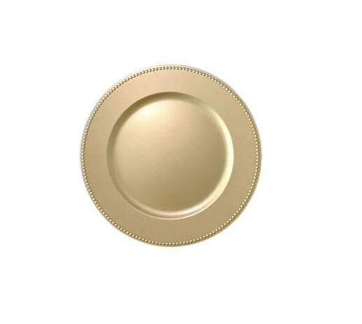 Champagne-colored polypropylene support plate (charger), diameter 32.5 cm. Ideal for event halls, wedding halls, etc
