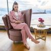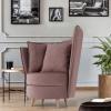 Art Deco armchair Upholstery material: Kronos fabric Abrasion resistance of fabric according to Martindale test: 60,000 abrasions Upholstery color: 27 pink Foot material: wood Foot color: beech Dimensions (LxWxH): 90x80x102 cm Seat height: 44 cm Cushion seat depth: 53 cm Depth of seat without cushions: 62 cm Height of lower floor space: 12 cm Armchair core:  Particleboard / PUR foam Filling: fully upholstered foam Two cushions Seat cushion is not removable Cushion covers are zippered Armchair cannot be unfolded Load capacity: 120 kg Supplied unmounted