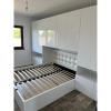 Bedroom furniture to order consisting of melamine chipboard, blum hardware integral, mdf fronts. Design and installation free of charge. We configure together the furniture system according to space, material and accessories. We produce to order different furniture configurations with different types of accessorization, composite countertops, mdf fronts painted matte, ultramat, glossy, ultralucent with different closing / opening systems, generous storage spaces with instant access by opening the Aventos HF or Hk. Hinges with cushioning included in the hinge through the CLIP top BLUMOTION system. Different systems of drawers with different depths. Tandem system, Tandembox, Legrabox in different colors. Somiere folding with linen crate. Bed heads upholstered with ecological leather.