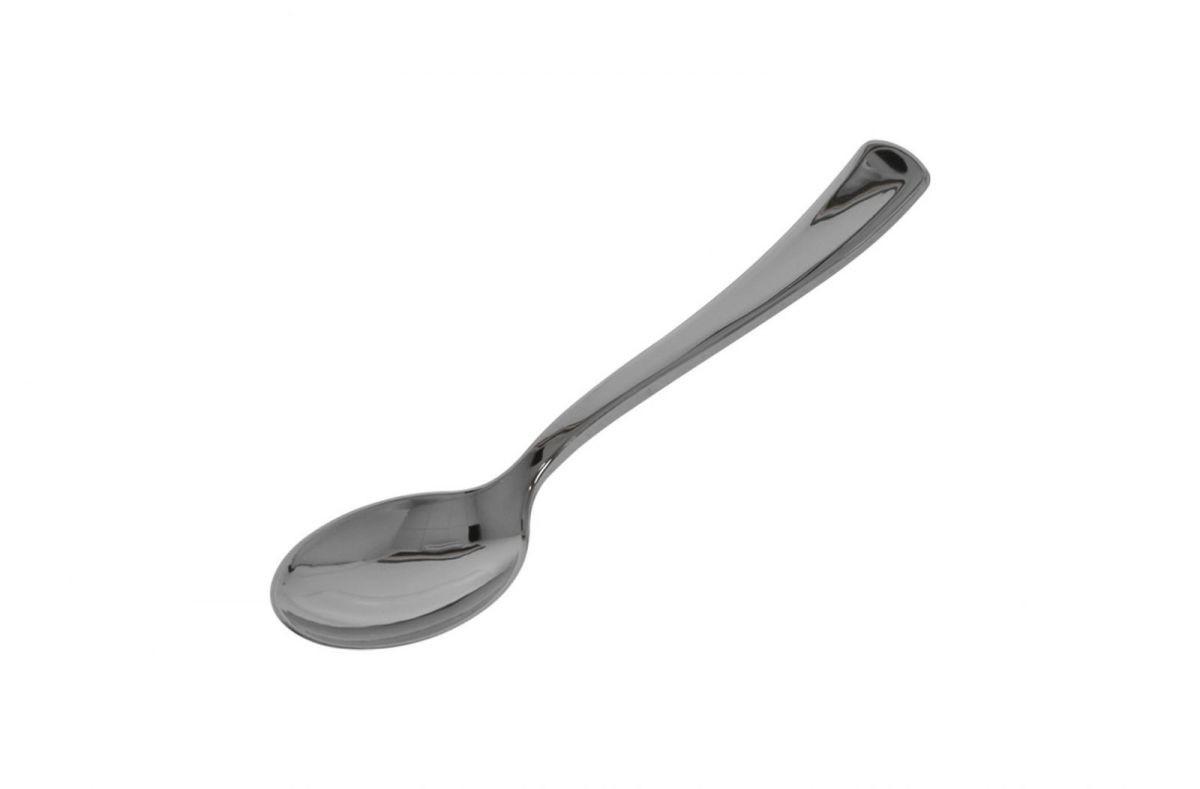 Set of 50 teaspoons espresso coffee or gourmet single-portion tasting, reusable plastic, silver color. Length 10 cm; resistant between 10-20 dishwasher washes. The resistance of these items to dishwashers has been determined based on the standard UNE-EN 53928: 2020 / UNE-EN 12875-1: 2005 Mechanical resistance to dishwashing.