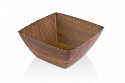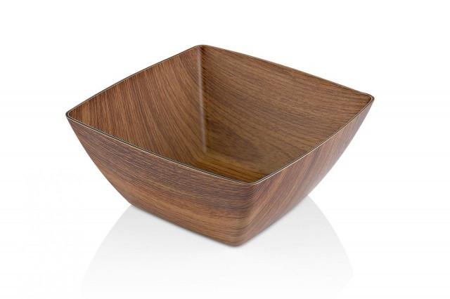 Bol patrat din plastic rezistent SAN cu finisare tip lemn natur, model Ming; dimensiuni 12x12 cm, inaltime 6 cm