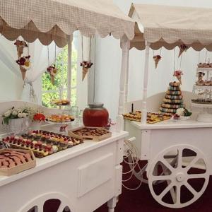 Carucior Candy Bar suport dulciuri, prajituri, lemonade bar rotile sunt doar de decor.