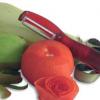 Decojitor universal pentru legume, fructe, cu lama mobila si zimtata; lungime 17.5 cm; maner ergonomic de culoare rosie