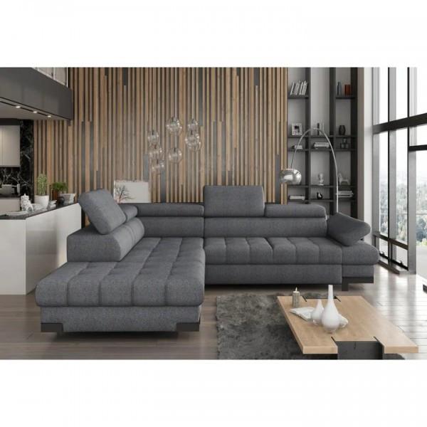 CORNER SELVA L, LEFT CHAISE LONGUE, DARK GREY FABRIC - ENJOY 23, 263X97/223X75/95 CM LXL1/L2XH1/H2 The corner corner from the SELVA L range is a modern corner, represented by versatility and elegance. Its headrests are adjustable and can be ordered both with the chaise longue on the left and right sides. You can choose the color and material from a wide range of samples displayed in the presentation images. The seat is made with FALIST springs, one of the elements that ensures the durability and comfort of this corner. Dimensions: Length: 263 cm Width/Width of chaise longue: 97/223 cm Height: 75/95 cm Height to seat: 45 cm Sleeping surface: 122 x 190 cm
