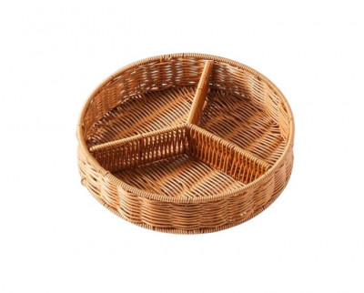 Braided polypropylene basket diameter 28 cm; arranged with 3 compartments; ideal for appetizers, candies