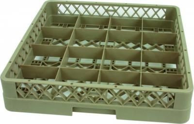 Basket Cups 25 compartments (for cups with max 90 mm diam); 50x50xH14 cm, mustard color. Height compatible depending on the glass: Elevation 1-code AW15686, compatible 2-code AW25276 or Universal height uncompartmented code AW25266
