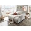 Seat and backrest: covered with textile, which is filled with high-quality antiallergic fillers. Comfort seat: soft and casual upholstery and padding adapts to body shape Relaxing prints and forming wave of requests were typical Rear: made of ergonomic foam The MADELINE L-shaped modular system is distinguished by excellence of Relaxation, comfort, extremely casual upholstery, as a model you want to laze and relax on it. With its modern shapes, the sofa with its distinctive appearance offers ample space to spend comfortable evenings with family or friends. With a timeless design, it fits perfectly into any environment and freely makes in the receiving salon a good figure. Care instructions: To preserve the quality and beauty of the product, there are several important care instructions: Regular vacuuming: dust and dirt easily in the fibers of the reference cable accumulate. To prevent this, you should be vacuuming the sofa regularly, preferably with a soft brush attachment. Stain removal: If you have a stain on the material, you must remove it immediately. Use a clean, damp detergent and cloth to treat the stain gently. Avoid water: The textile covering the product should not be exposed to too much water, as this will lead to stains and discoloration. Therefore, use very little water for cleaning and be careful not to allow the lid to dry completely before using it again. Protection from sunlight: keep the textile away from direct sunlight, discoloration and becoming brittle. Do not place the Sofa in direct sunlight, if necessary, use curtains or blinds for the Sofa to protect from sunlight. By following these simple care tips, you can ensure that the fabric of your sofa stays in perfect condition for many years. Features and functions Execution of relaxation area Seat cushions; removable Color Color information Please note that Online images of articles may vary. Features and functions Blank version Long seat on the right Backrest execution Lined Execution of armrests Lined Type of upholstery suspension, POLYURETHANE foam Cushion structure suspension, POLYURETHANE foam Kind of like the seat cushion bulk Number of back cushions 5 Back cushion mode bulk Equipment Back pillow Number of legs 12 St. Feet Type Glide Weight 35 kg/m3 Number of armrests 1 Width 150 cm Width of seating area 100 cm Weight 77 kg Height 86 cm Foot Height 5 cm Seat height 44 cm Depth 170 cm Seat depth 127 cm Note Dimensions All dates are approximate dimensions. Armrest width 25 cm Material Reference - Reference Corpus - Armrests reference - Pilling Reference 4-5 (low and very low) Material composition 88% Polyester, 12% Acrylic or your choice Base material load-bearing parts are made of solid wood, laminated, MDF and wood-based materials Leg material Plastic Reference abrasion resistance 50000 Martindale Color light gray Color Feet black