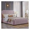 Are you dreaming of a dream sleep? ✨ Our upholstered bed is the perfect solution! With a modern design and high-quality materials, it brings extra elegance to your bedroom. Perfect for those who want to combine comfort with style. ???? ???? Features: ✔️ Premium upholstery – soft and durable, easy to maintain ✔️ Solid frame – for long-term ✔️ support and durability Ergonomic design – ideal for relaxation and restful sleep ???? Turn your bedroom into a haven of relaxation with this luxurious and comfortable upholstered bed! We guarantee that you will wake up with a smile on your face! ???? #PatTapitat #SomnOdihnitor #MobilierDormitor #DesignModern #TapițerieDeCalitate #ConfortSiStil This stunning bed frame looks pleasing to the eyes, deeply lined with a sleek design and beads, adds this stunning bed to any room and is sure to add glamour with the available plush velvet fabrics it is available in. Wooden and solid legs. Blades. FEATURES: Material: plush velvetFinish: your choiceHand-upholstered in RomaniaHigh quality fabric finishDeep padded headboard for superb comfortSlats are included with the bed frameMattress is not included; Available separatelyThis is made to order by bed, it will take 3-4 weeks to be available at an affordable priceImages shown are for illustrative purposes only DIMENSIONS: Height: 137 cmWidth: 213 cmLength: 212 cm