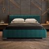 The Jacqualynn bed is a modern piece of furniture with a minimalist design, dressed in a pleasant velvet fabric that will bring calm and tranquility to your bedroom. The bed has been designed with minimalist interiors in mind, which means that it will also look good in industrial interiors decorated in a raw style. The structure rests on chrome-plated metal legs, so you don't have to worry about its stability and safety. The soft headrest provides support when sitting or relaxing with a book. A great advantage of the product is its functional container in which both bed linen and other textiles can be stored. Thanks to it, you will tidy up your bedroom and keep the room spotless. Features The bed box is made of laminated chipboard, MDF and laminated wood. Foam thickness in the headrest 3 cm The headrest (93 cm) allows you to comfortably rest your back (headrest thickness 13 cm). PREMIUM fabric.