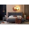 SCANDINAVIAN UPHOLSTERED BED, GRAY VELVETY FABRIC WITH FIREPLACE. 160X200 CM Dimensions: Length: 216 cm Width: 196 cm Height: 118 cm Height to seat: 31 cm Technical details: Material used: solid wood, velvety fabric Color: gray Mattress not included Stove included: 160x200 cm Collation: The product is not mounted. Assembly is quick and easy, and can be executed in just 15-20 minutes, based on the assembly instructions in the package. Use of the product: Clean furniture with a slightly damp cloth or paper towel. Avoid the use of chemicals, except those specially designed for furniture care.