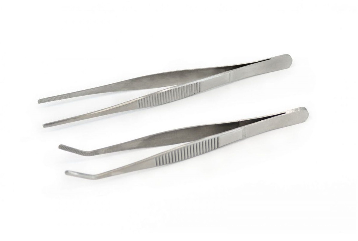 Add precision and control to the preparation and decoration of dishes with this set of 2 stainless steel tweezers, ideal for the kitchen or bar. The set includes: - 18 cm straight tweezers, perfect for handling fine ingredients such as microgreens, garnishes or delicate dishes. - Tweezers with a 16 cm curved tip, ideal for plate decoration, artistic plating and versatile use in the bar or gastronomy. Made of resistant stainless steel, these tweezers offer durability, precision and comfort, being indispensable in professional kitchens and for gastronomy enthusiasts