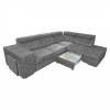 Upholstery material: Country 8 Brown or Country 17 grey fabric. Friction resistance of the fabric according to the Martindale test: 65,000 friction cycles Colour: brown Construction material: pine wood/beech wood/laminated board Dimensions (WxHxH): 264x210x79/97 cm Sleeping area (WxW): 130x190 cm Seat height: 43 cm Seat depth: 56 cm Ottoman dimensions (WxD): 97x165 cm Armrest dimensions (WxHxH): 30x97x58 cm With seat Stool dimensions (WxHxH): 40x33x48 cm Fully upholstered Corner With storage space Right-hand version On legs Leg material: metal Leg colour: chrome Height of the lower space from the floor: 4.5 cm Positionable headrests Positioning 5 degrees of the headrests Filling: phalista spring/pure foam/molitan Delivered disassembled. Pieces in package:1 Weight:134 kg Net weight:133 kg Volume:3.00304 m3