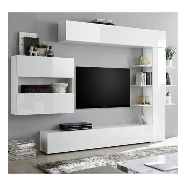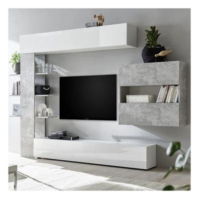 FEATURES: Material : Fibreboard (Fibreboard) Finish : White Glossy or combined Flap fronts and flap lift in varnished glossy white Open elements, cabinet and 2 keys Element: white glossy varnished, concrete or cadiz oak Structure and fronts thickness 18 mm Lift the flap with soft-locking system Suitable furniture available to order Available at an affordable price The Most Elegant and Unique Piece of Furniture The images shown are for illustrative purposes only TV COMPARTMENT DIMENSIONS : Height : 129cm Width : 126cm Depth : 30 cm SIZE SET : Height : 187cm Width : 285cm Depth : 30 cm