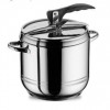 Oala sub presiune fabricata din otel inoxidabil de inalta calitate, 18/0 (18% crom).Este compusa din oala si un capac . Oala are supapa de siguranta automata Grosime pereti 0,7 mm. Fund triplucapsulat. Diametru:26cm Capacitate: 3.5L Producator:Hascevher