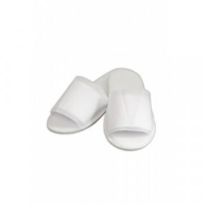 Papuci hotelieri material netesut -Tip deschis mic. Produsul hotelier are material netesut, 50gr/mp partea de sus si 30 gr/mp talpa 4 mm. Acest tip de papuci hotelieri, este un produs ieftin, ideal de a oferi oaspetilor dumneavoastra, un confort si o senzatie placuta familiara, la un pret mic. Acest produs a fost delistat si nu va mai fi disponibil la vanzare pentru viitor. Va stam la dispozitie cu alte produse similare din portofoliul nostru.  CANTITATE MINIMA BAX de 160 bucati