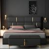 Produsul este confectionat din pal, mdf si lemn stratificat. Profile din inox auriu lucios sau brush, argintiu lucios sau brush, negru lucios sau brush. Produsul in compozitia de baza are inclusa somiera pe picioare. Nu sunt incluse decoratiunile si salteaua. Salteaua se achizitioneaza separat in functie de preferinta.
