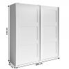 Material: DTD laminat Culoare: alb Dulap Dimensiuni (lxAxÎ): 200x65x218 cm Împărţit în 4 părţi 2x parte pentru umeraş Două tije pentru agăţat 2x parte pentru raft 2 rafturi mai late în partea superioară Greutate totală suportată a rafurilor largi: 15 kg Greutate totală suportată de rafturile mai înguste: 10 kg Greutate totală suportată cuier: 8 kg Cu uşi glisante Recomandăm ataşarea dulapului pe perete Construcţie robustă şi stabilă Pat Dimensiuni (lxAxÎ): 167x225x100 cm Dimensiuni zonă de dormit: 160x200 cm Cu rafturi încorporate la capul patului Cu spaţiu de depozitare Două sertare în partea inferioară Construcţie robustă şi stabilă Fără somieră şi saltele Recomandăm saltele din oferta noastră Recomandăm somiera Stelar din oferta noastră Noptieră În pachet 2 buc. Material: DTD laminat Culoare: alb Dimensiuni (lxAxÎ): 50x36x44 cm 1 sertar Zonă de depozitare deschisă Greutate totală suportată a noptierei: 10 kg Greutate totală suportată a sertarului: 8 kg Greutate totală suportată pe raft: 10 kg Construcţie robustă şi stabilă Furnizate nemontate Bucati in ambalaj:1 Greutate:294.5 kg Greutate netto:289 kg Volum:0.6440631 m3