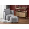 SET FOTOLIU CU TABURET HAMPTON, TAPITAT CU STOFA GRI Dimensiuni: Fotoliu: 75x74x61 cm LxAxH Taburet: 50x34 cm ØxH Caracteristici: Material: stofa/lemn masiv Culoare: gri Utilizarea produsului: Mobila se curăță cu o lavetă sau cu un prosop de hârtie ușor umed. A se evita utilizarea produselor chimice, cu excepția celor special concepute pentru îngrijirea mobilei.