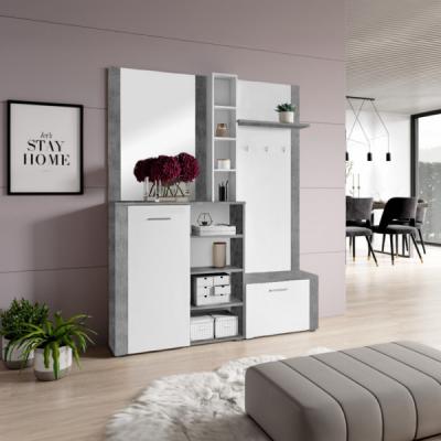 Material: PAL melaminat Culoare in ordinea imaginilor: stejar sonoma, alb/beton, stejar artisan/grafit. Dimensiuni (Lxlxh): 150x32x190 cm Pantofar Oglindă Dimensiuni oglindă (Lxlxh): 69,8x1,9x90,4 cm Spaţiu de depozitare deschis Dulap cu poliţe Dimensiuni dulap (Lxh): 40,4x95 cm Poliţă Două cârlige Portanţa cârligului: 1 kg AKCES-PLAST Mânere din plastic Culoarea mânerelor: argintie Vă recomandăm să ataşaţi mobilierul de perete Livrat dezasamblat