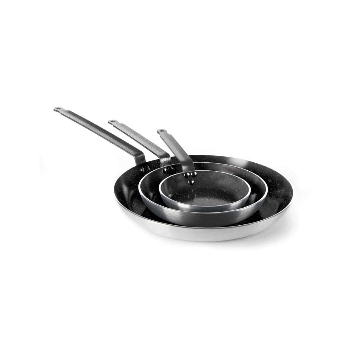 Tigaie profesionala 26x(H)4.5 cm, aluminiu, 3 straturi anti-aderente tip marmura, maner otel, potrivita pentru toate sursele de caldura, inclusiv inductie