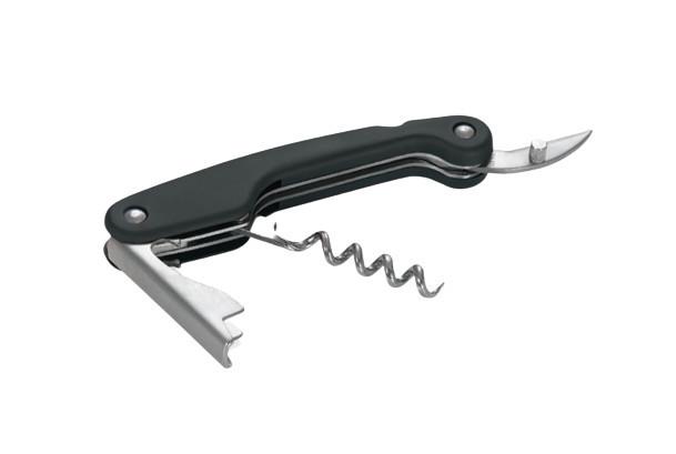 Desfacator si tirbuson pentru ospatar, 12 cm (corkscrew), culoare neagra, maner moale