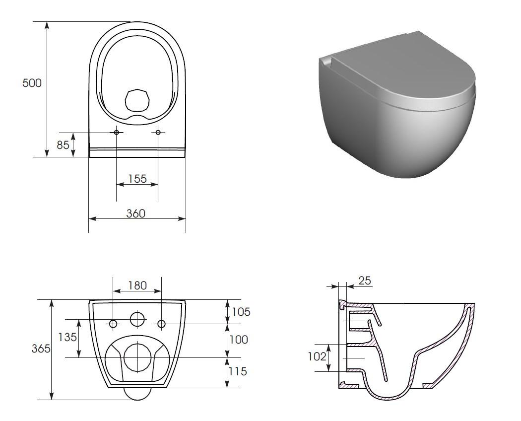 Descriere material: ceramica sanitara, finish: lucios Garanție (număr de ani): 10 Lăţime (cm): 36 Adâncime (cm): 50 Înălţime (cm): 36.5