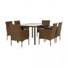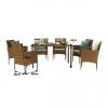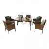 Setul practic de ratan GARDEN, este compus din 7-piese care conţine 6 fotolii cu perne şi o masă cu sticlă întărită. Rezistenţa materialului: 95 000 Martindale Culoare: miere + crem. Material: tehno ratan+oţel+stilă întărită (5mm). Dimensiuni (LxAxH) fotoliu: 58x60x85cm; dimensiunile mesei:130x90x74cm.